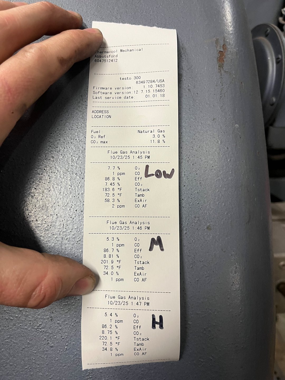 The scope of work included a full boiler inspection and maintenance, performed by a Class A Gas fitter, in accordance with manufacturer recommendations and local safety requirements. Preventive boiler maintenance helps reduce the risk of unexpected breakdowns, improves combustion efficiency, and extends the overall lifespan of high-capacity commercial heating equipment.