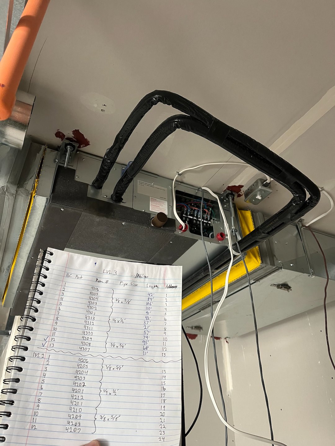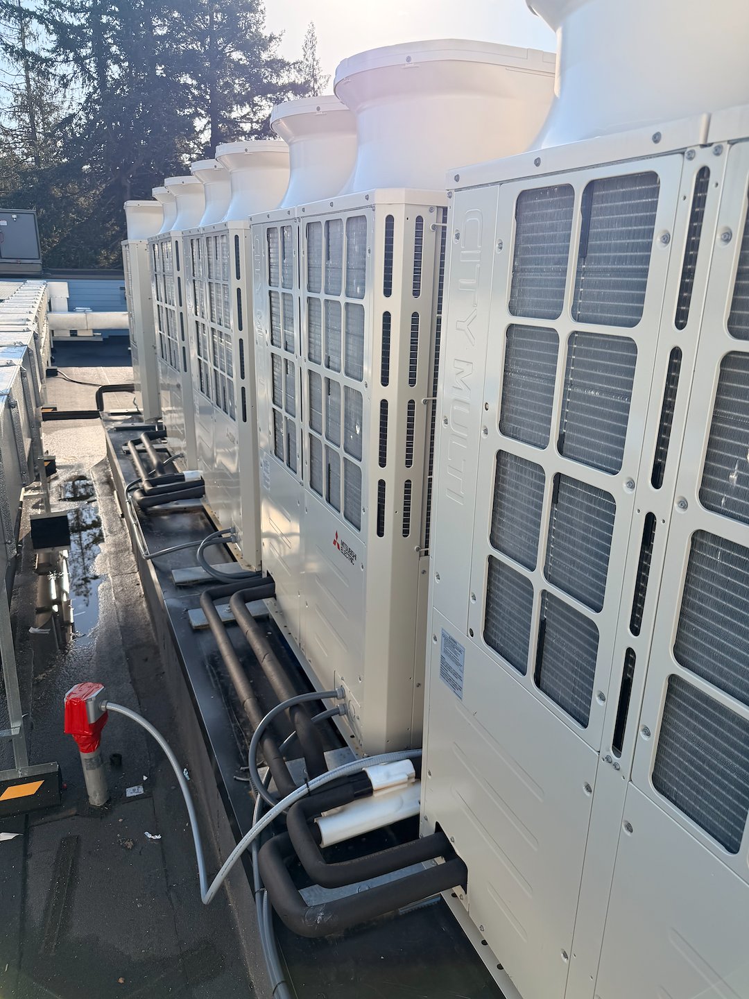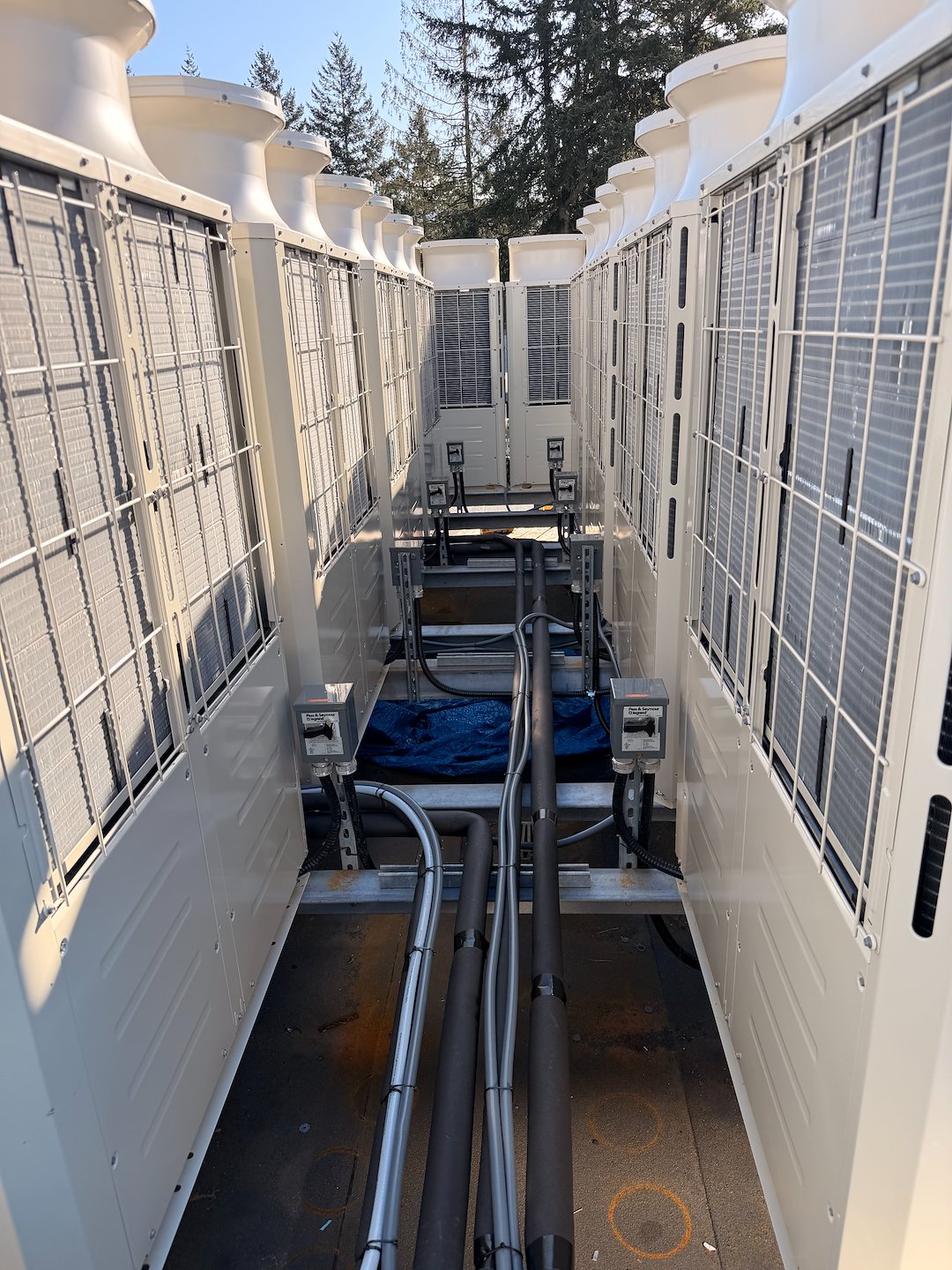 Our team was responsible for a significant portion of the mechanical installation and layout, including all refrigerant piping and lineset installation, pressure testing, system evacuations, refrigerant charging, control wiring, and full system startups and commissioning.