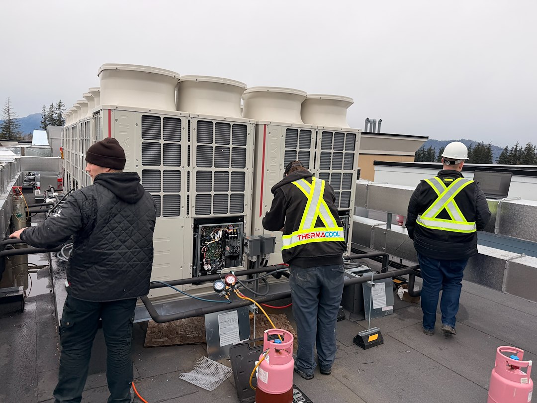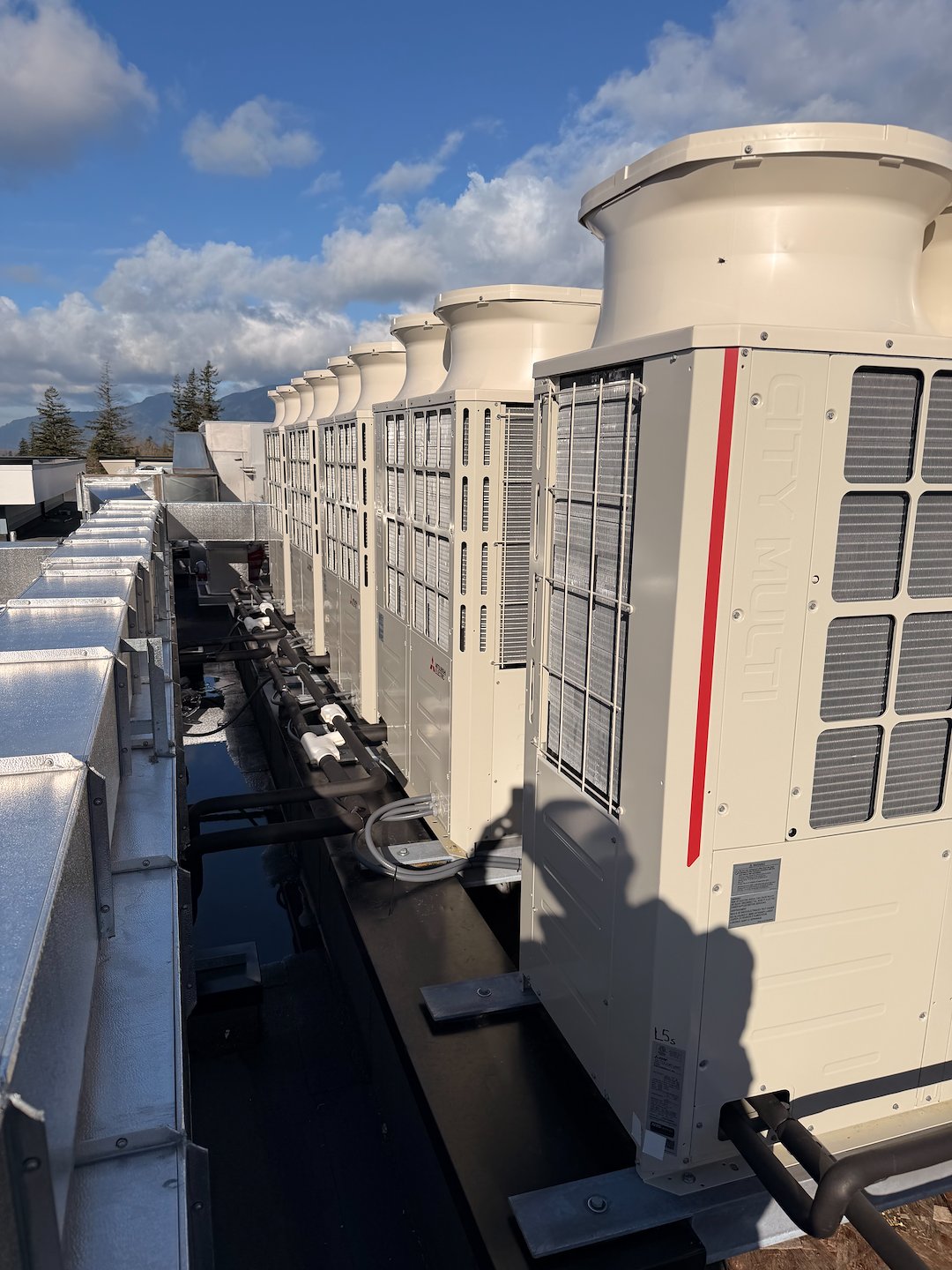 Thermacool Mechanical Ltd. recently completed a large-scale commercial HVAC installation in Chilliwack, BC, featuring a high-efficiency Mitsubishi City Multi VRF (Variable Refrigerant Flow) system designed to provide reliable heating and cooling for a 59-unit apartment building.