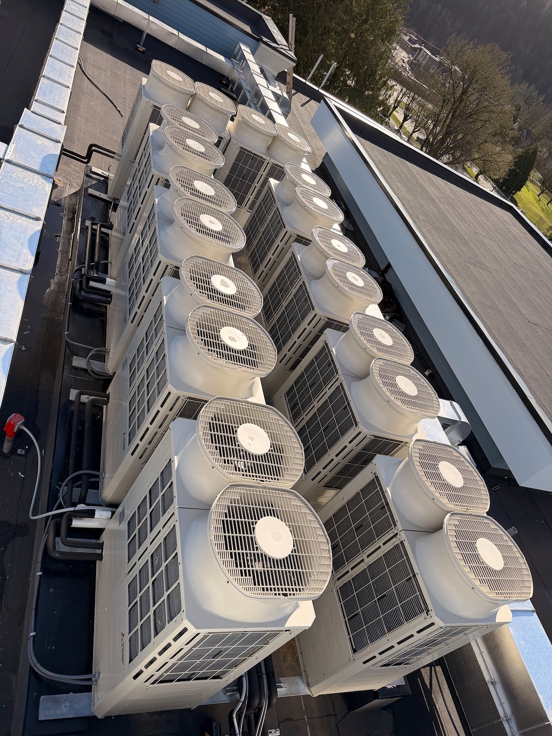 The project consists of five independent VRF systems, each serving different areas of the building for optimal zoning and energy efficiency. Each system includes paired (twinned) outdoor condensers working together, along with branch boxes installed on every floor, allowing precise temperature control throughout the building.